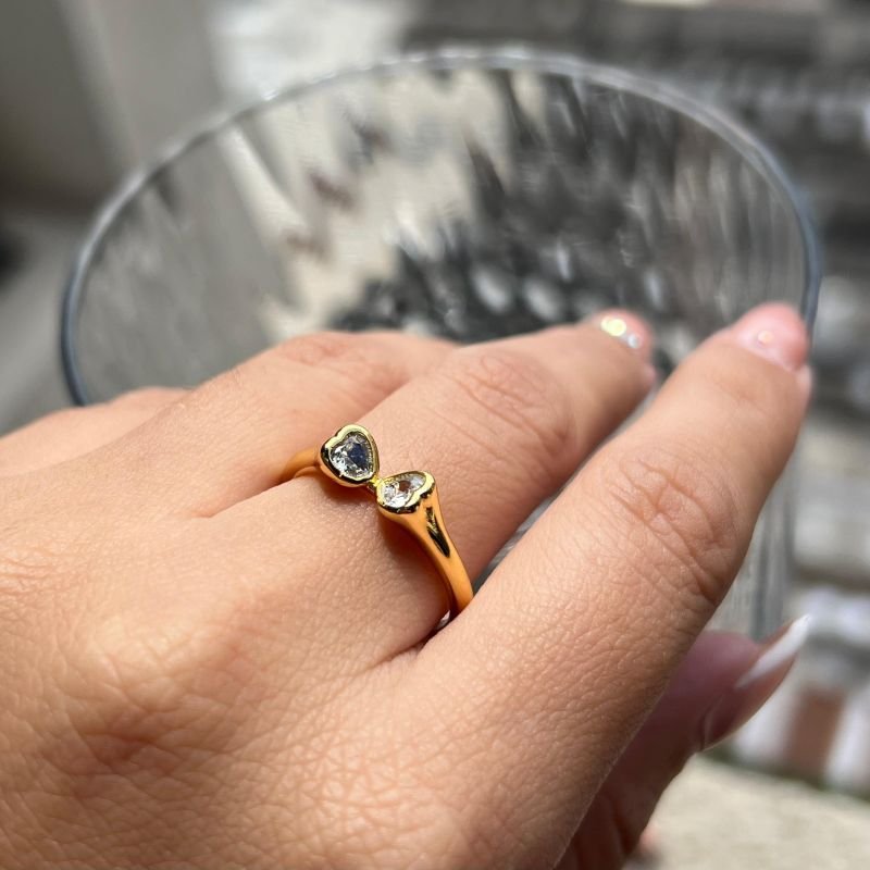 3. Anel Dois Corações Banho Ouro 18k/Prata 925