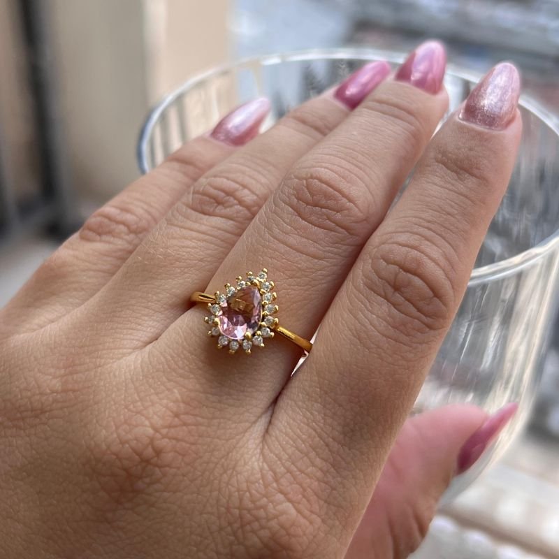 3. Anel Gota c/ Zircônia Rosa Banho Ouro 18k