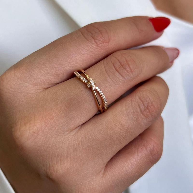 3. Anel Nó Cravejado Biju Fina Dourado/Ródio