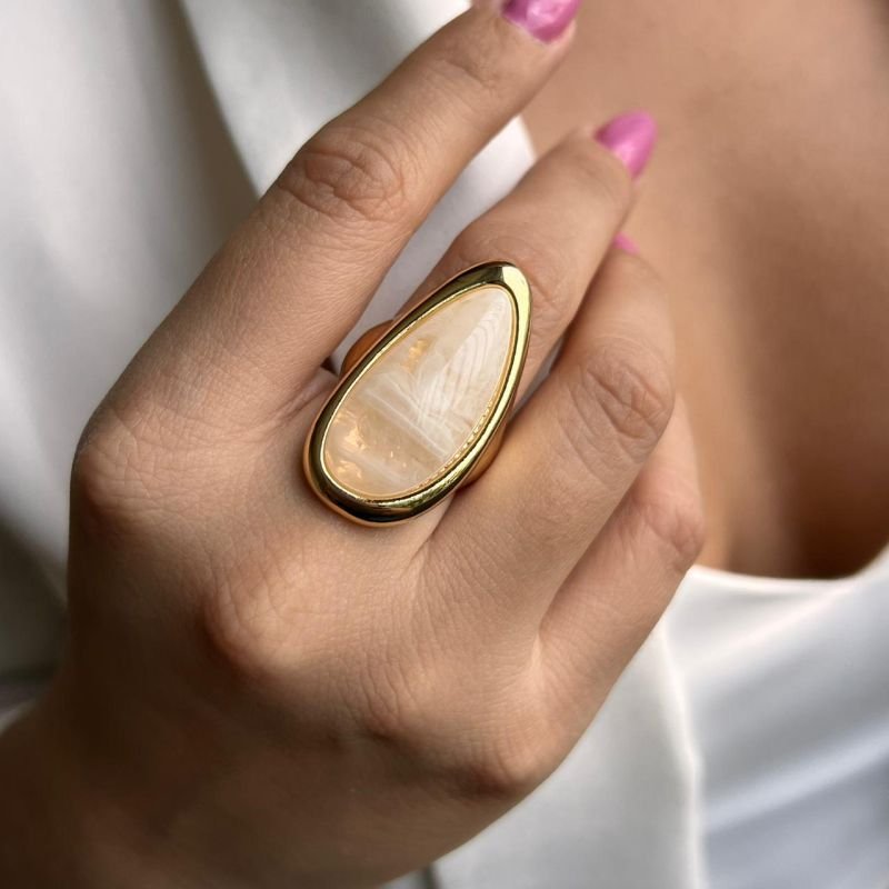 Anel Resinado Creme Biju Fina Dourado