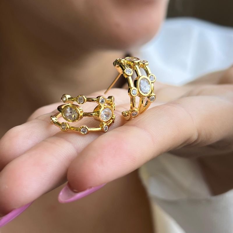 3. Argola com Pontos de Luz Banho Ouro 18k