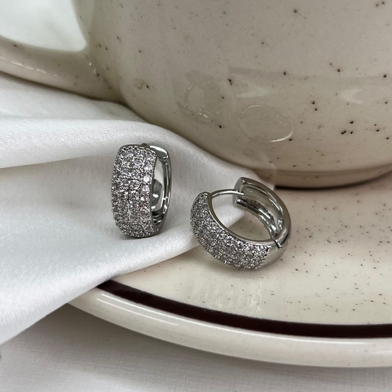 Argola Cravejada Click Biju Fina Ródio