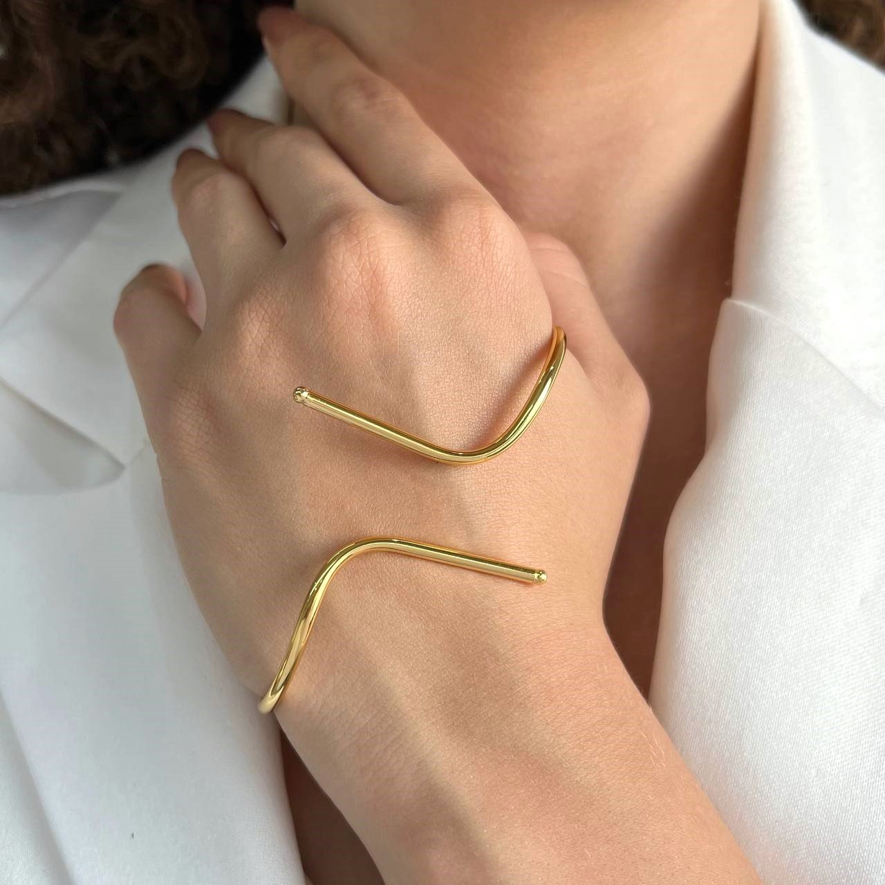 Bracelete De Mão Liso Banho Ouro 18k