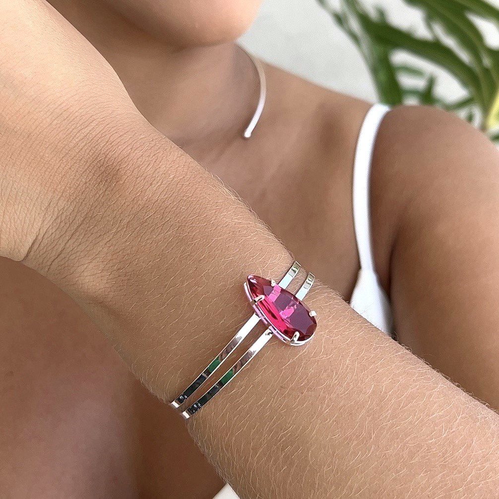 Bracelete Gota Rosa Pink Banho Prata 925