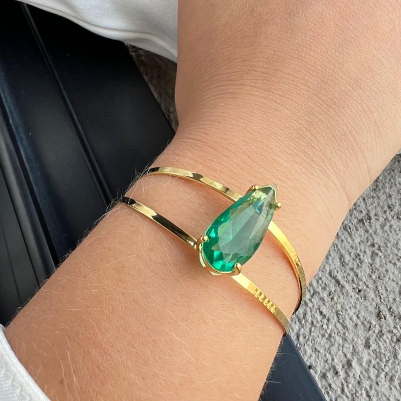 Bracelete Gota Verde Banho Ouro 18k