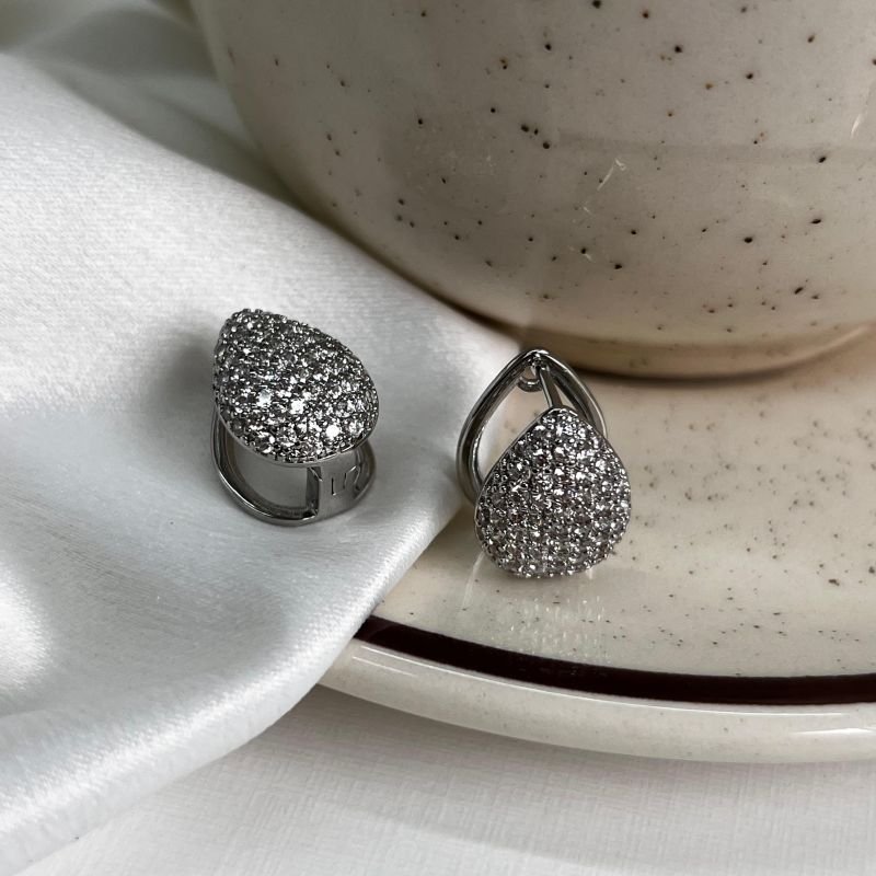 Brinco Argola Gota Cravejado Biju Fina Ródio