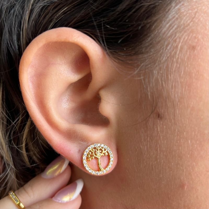 3. Brinco Arvore da Vida Banho Ouro 18k/Prata 925