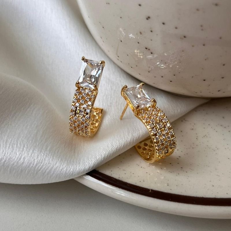 3. Brinco Biju Fina Cravejado Dourado/Ródio
