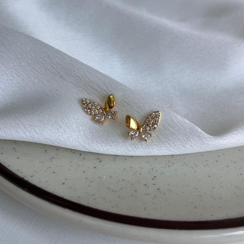 Brinco Borboleta Cravejada Banho Ouro 18k