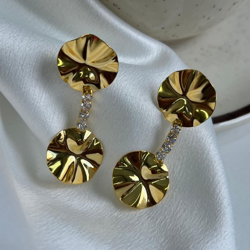 3. Brinco Chapeado C/ Zircônia Banho Ouro 18k