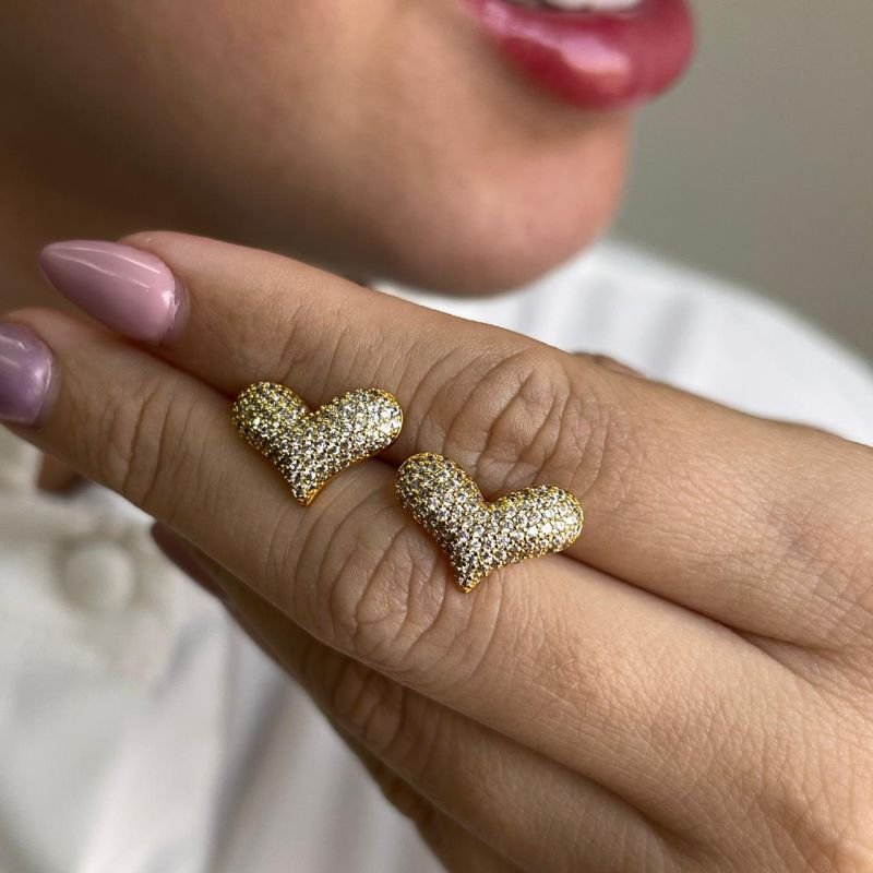 3. Brinco Coração Cravejado Banho Ouro 18k/Prata 925