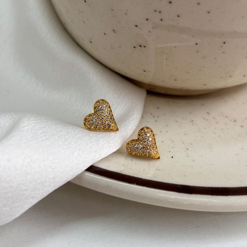 Brinco Coração Cravejado Com Zircônia Banho Ouro 18k