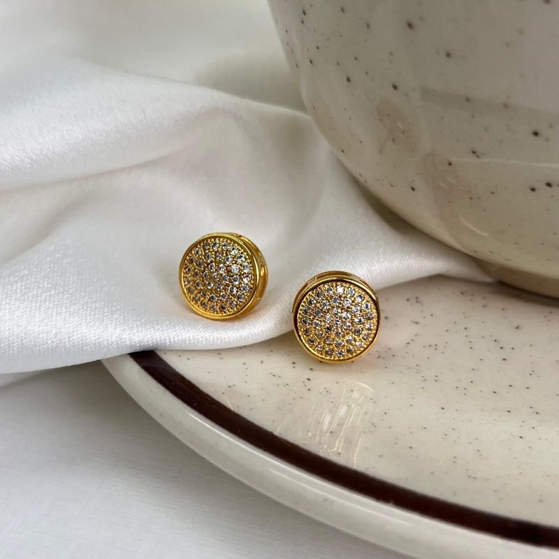 Brinco Cravejado Banho Ouro 18k