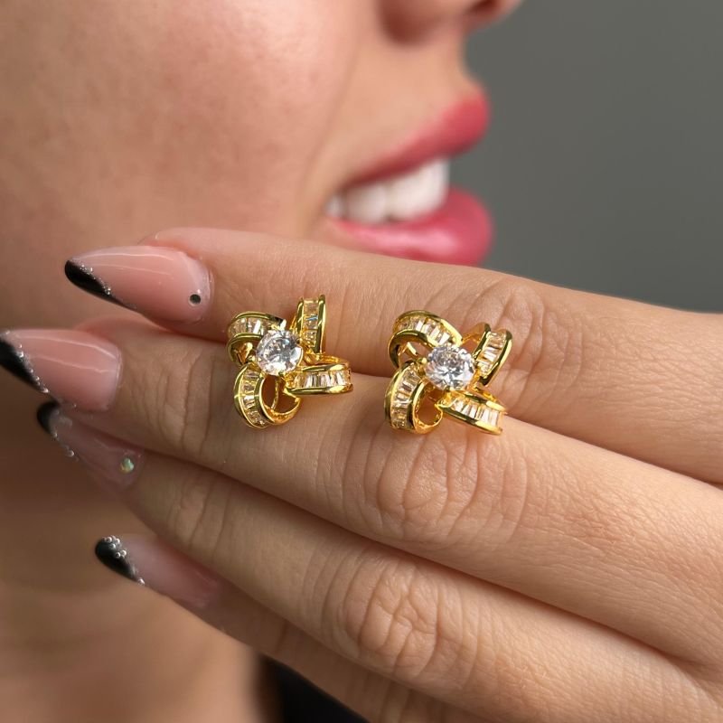3. Brinco Cravejado Banho Ouro 18k