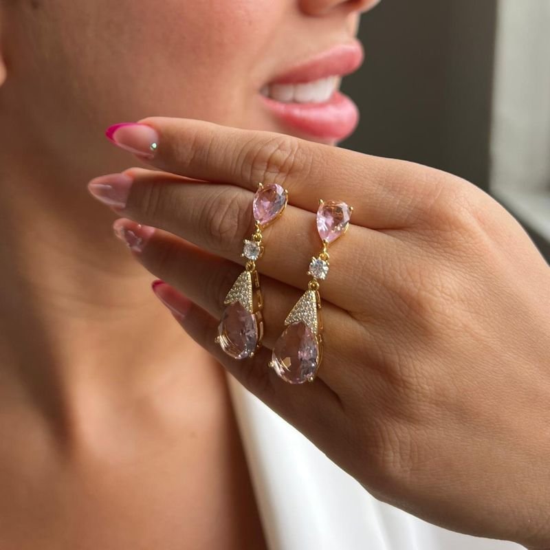 2. Brinco Cravejado Biju Fina Dourado/Ródio
