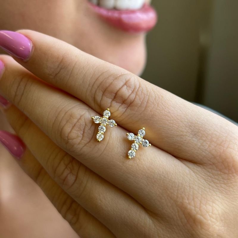 Brinco Cruz Banho Ouro 18k/Prata 925