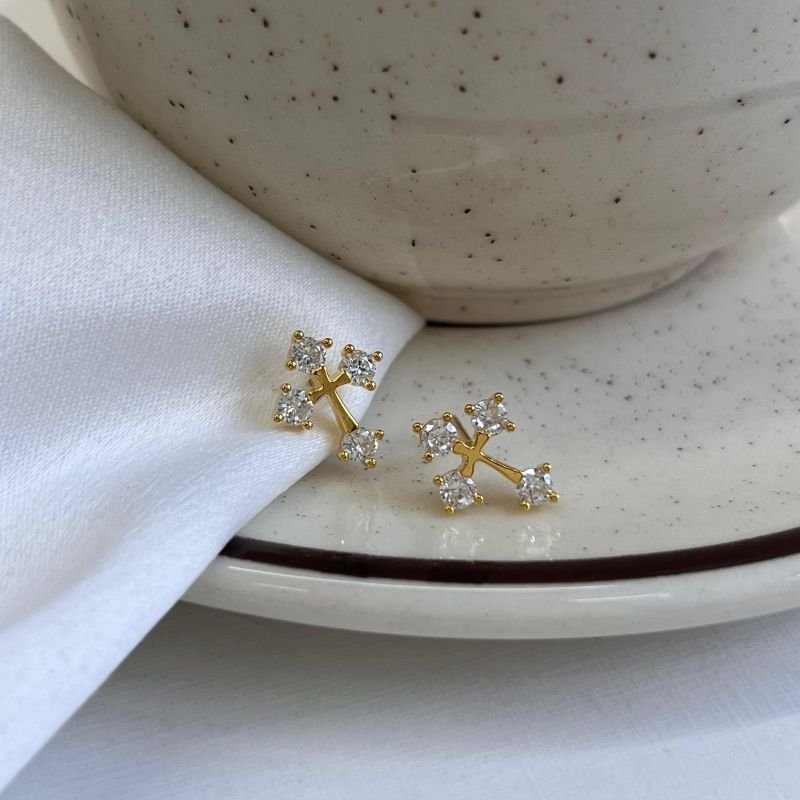3. Brinco Cruz C/ Zircônia Banho Ouro 18k/Prata 925