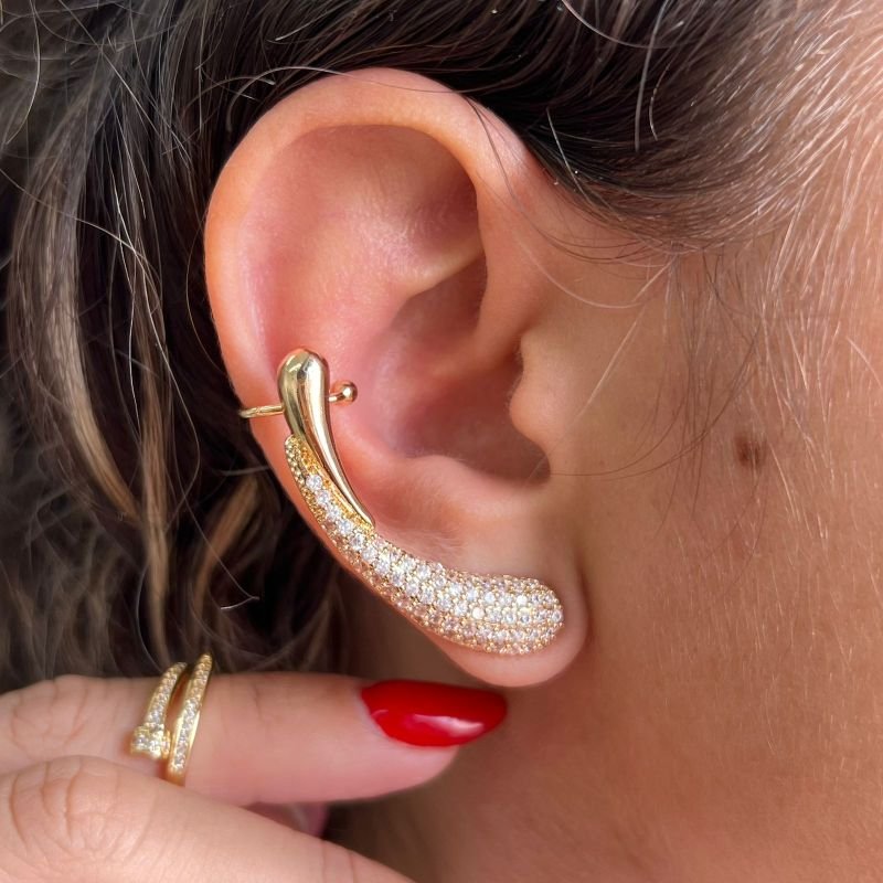 Brinco Ear Cuff Biju Fina Dourado/Ródio