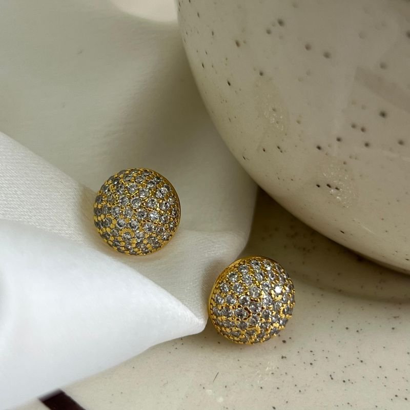 Brinco Esfera Com Zircônia Banho Ouro 18k/Prata 925