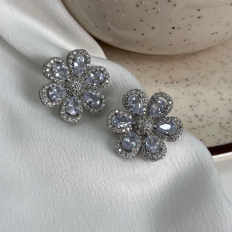Brinco Flor Cravejada Biju Fina Dourado/Ródio