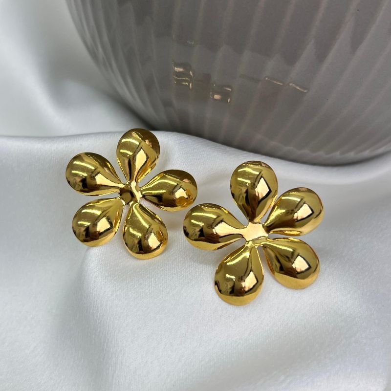 Brinco Flor Liso Banho Ouro 18k/Prata 925