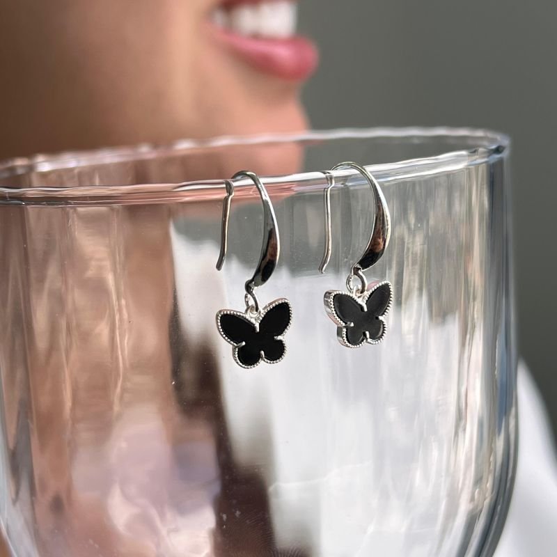 Brinco Gancho C/ Borboleta Resinada Banho Ouro 18k