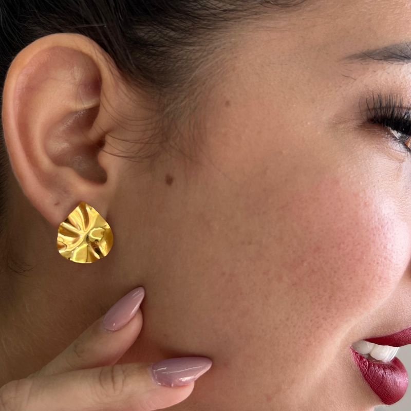 3. Brinco Gota Orgânico PP Banho Ouro 18k/Prata 925