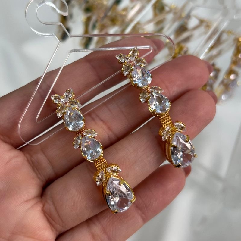 3. Brinco Gota Pedraria Banho Ouro 18k