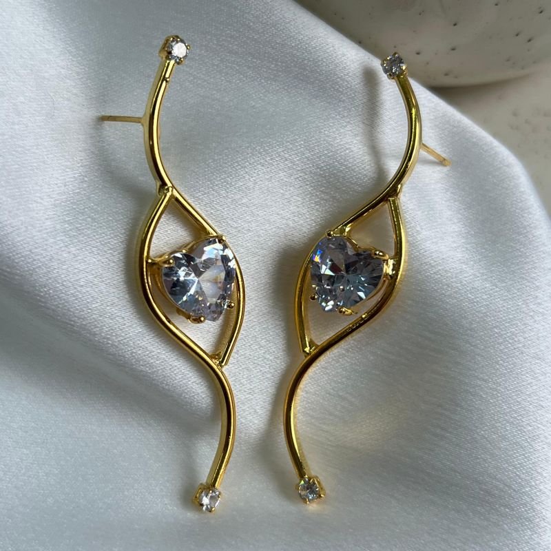 Brinco Grande C/ Zircônia Banho Ouro 18k/Prata 925