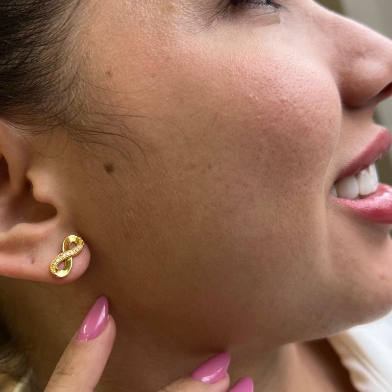 Brinco Infinito Banho Ouro 18k/Prata 925