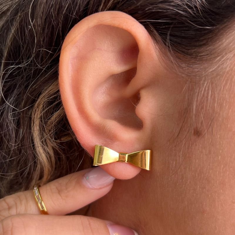 3. Brinco Laço Liso Banho Ouro 18k
