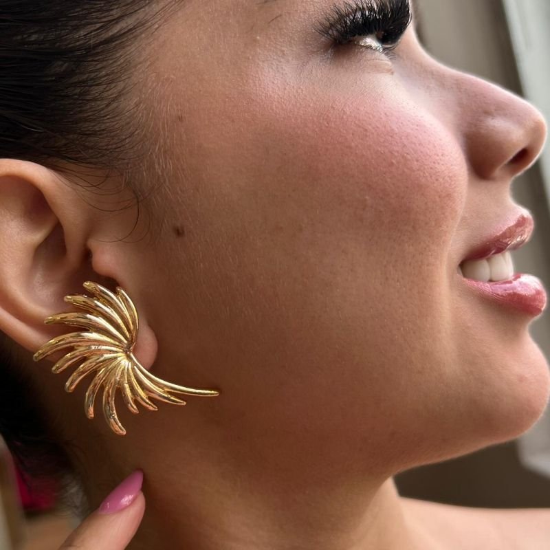 3. Brinco Leque Biju Fina Dourado/Ródio