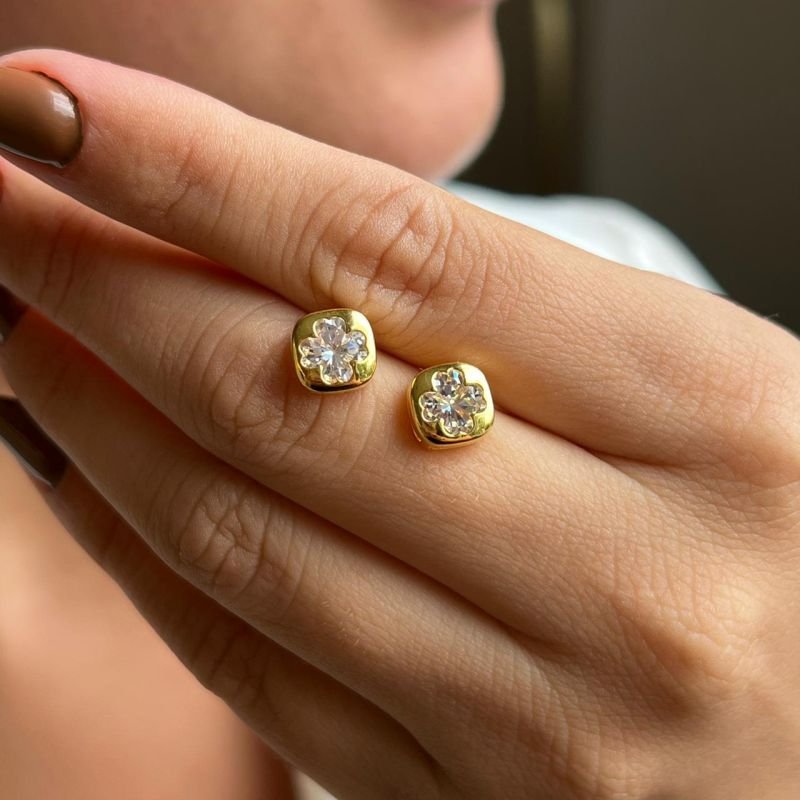 Brinco Minimalista Beatriz Trevo Em Zircônia Ouro18k/Prata 925