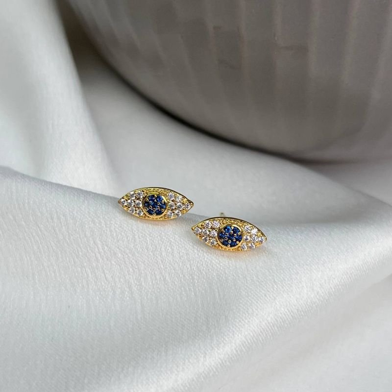 3. Brinco Olho Grego Cravejado Com Zircônia Banho Ouro 18k/Prata 925