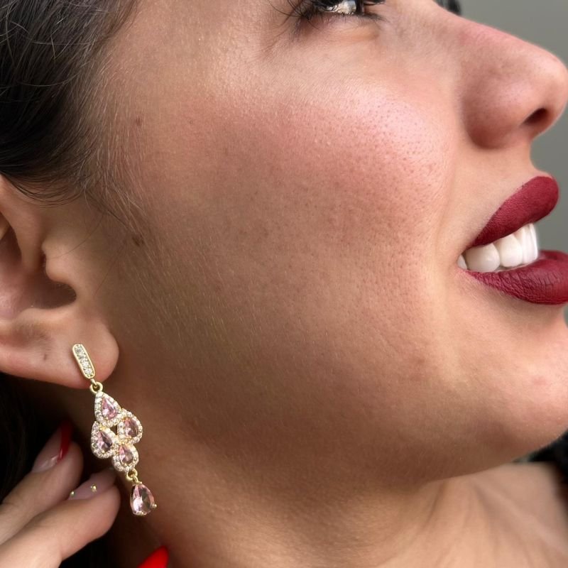 3. Brinco Pedraria Biju Fina Dourado
