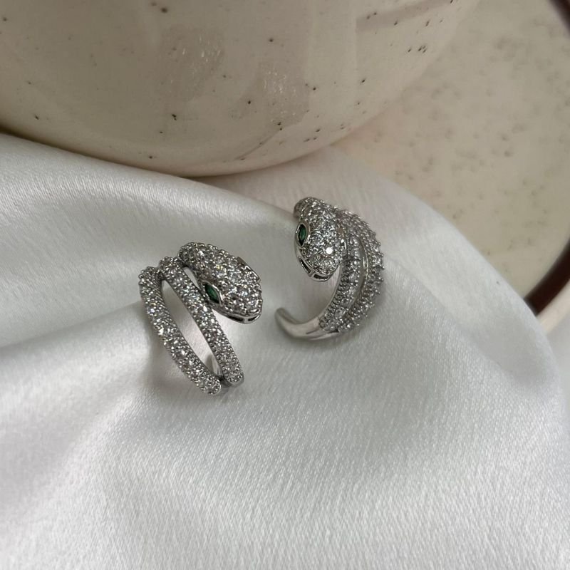 Brinco Serpente Olhos Verde Biju Fina Dourado/Ródio