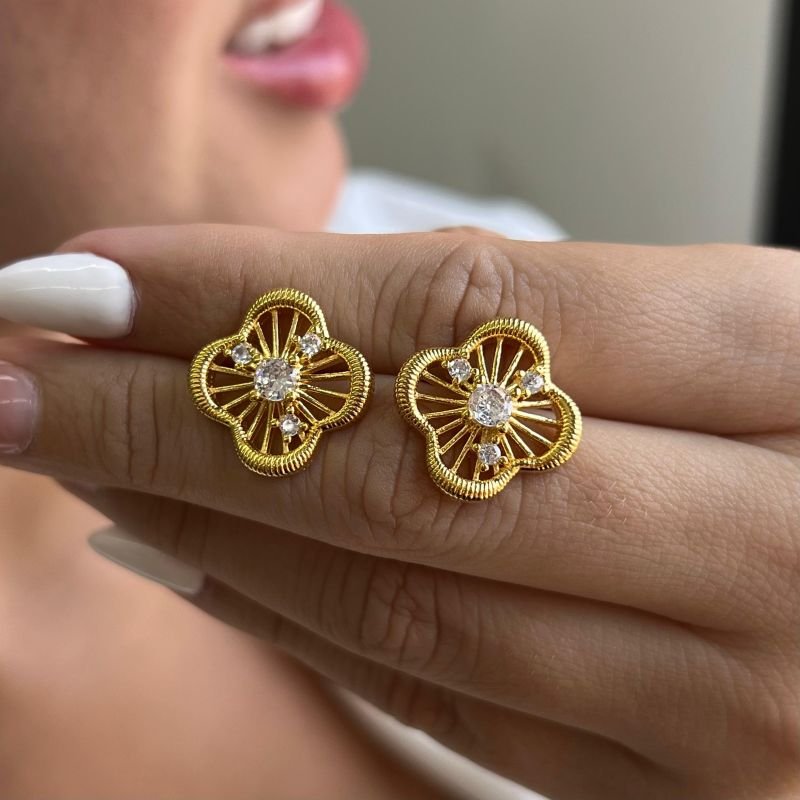 Brinco Trevo Banho Ouro 18k/Prata 925