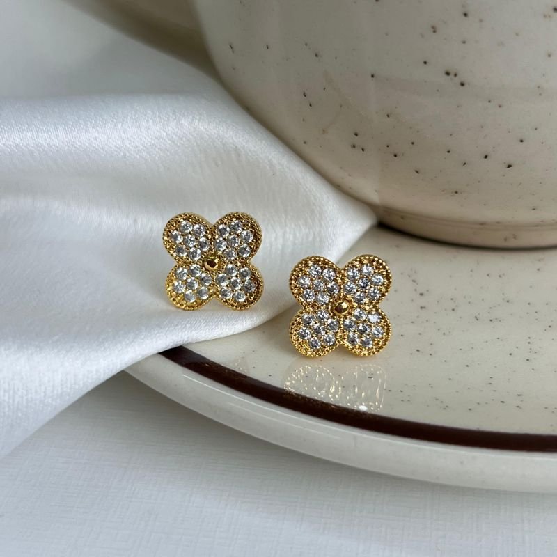 Brinco Trevo Cravejado Banho Ouro 18k/Prata 925