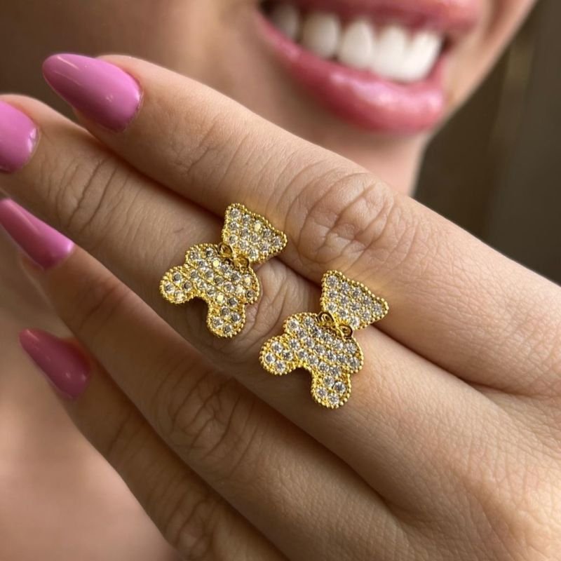 3. Brinco Urso Cravejado Banho Ouro 18k/Prata 925