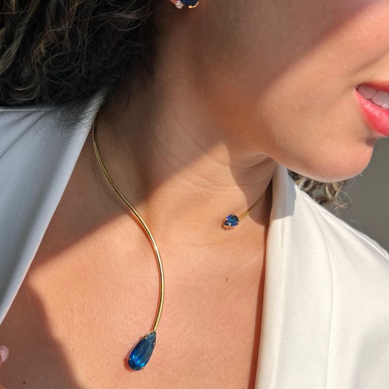 3. Choker Aro Gota Azul Banho Ouro 18k/Prata 925