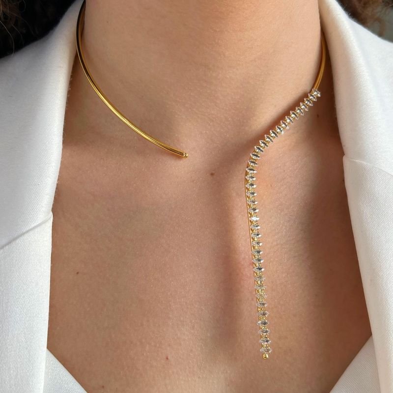 Choker Aro Navete Banho Ouro 18k/Prata 925