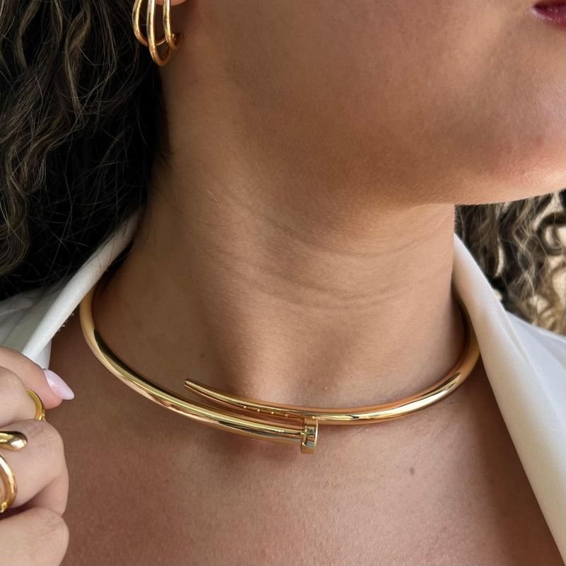 Choker Aro Prego Biju Fina Dourado/Ródio