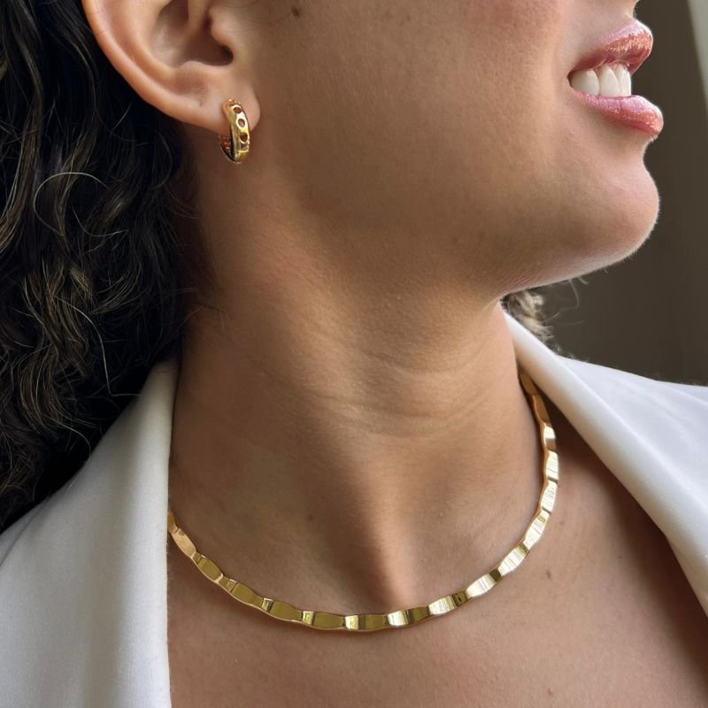 Choker Aro Rígido Ondular Biju Fina Dourado/Ródio