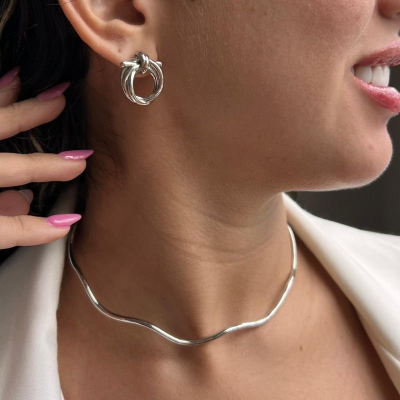 Choker Aro Rígido Ondular Biju Fina Dourado/Ródio