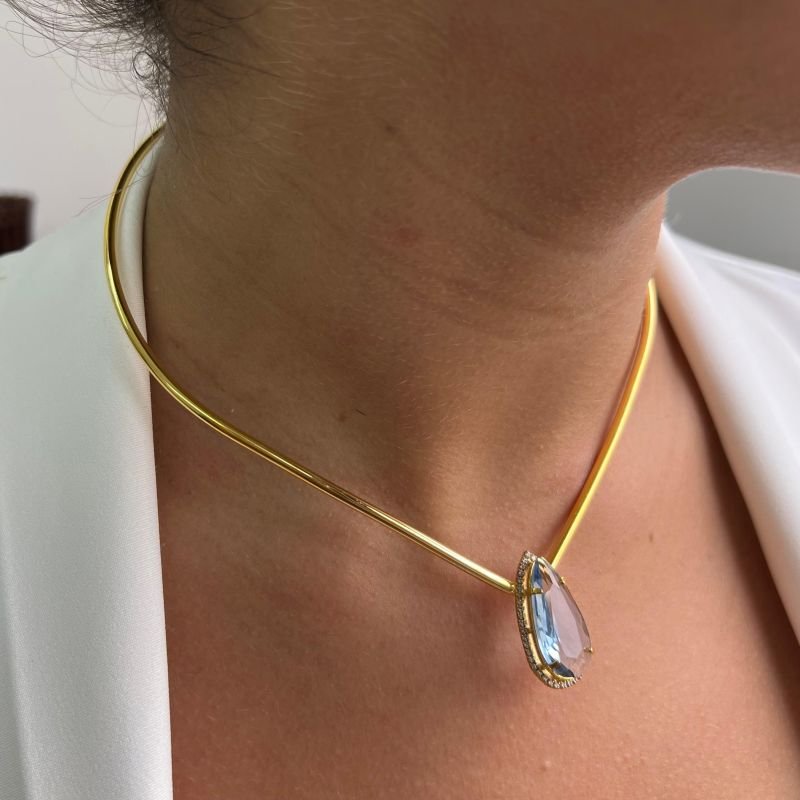 3. Choker Aro Zircônia Azul Banho Ouro 18k