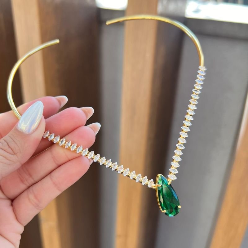 3. Choker Aro Zircônia Navete Verde Banho Ouro 18k/Prata 925