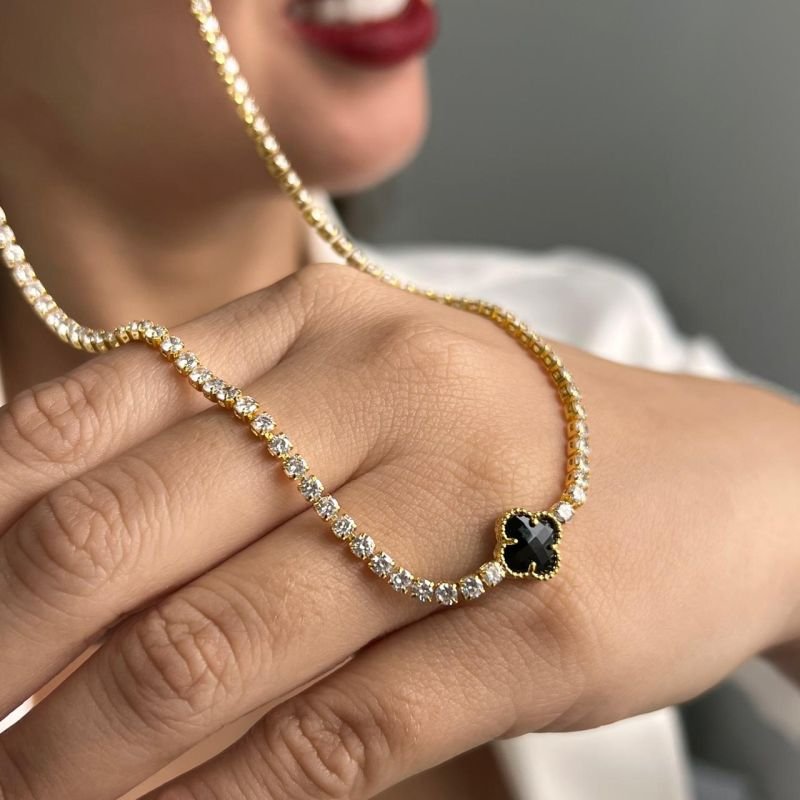Choker Cravejada c/ Trevo Banho Ouro 18k