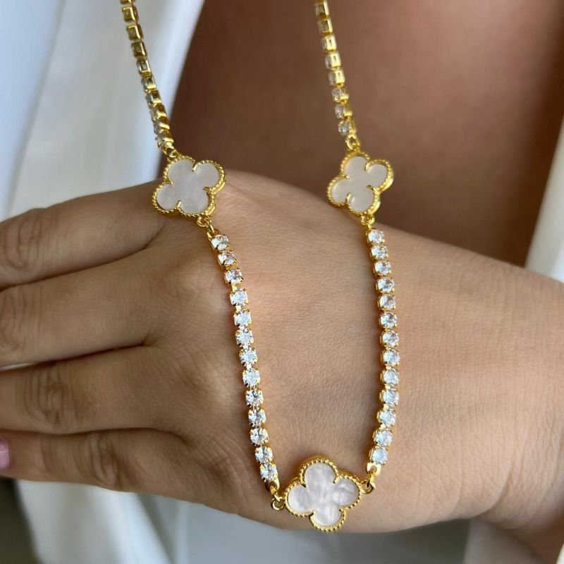 Choker Cravejada c/Trevo Banho Ouro 18k