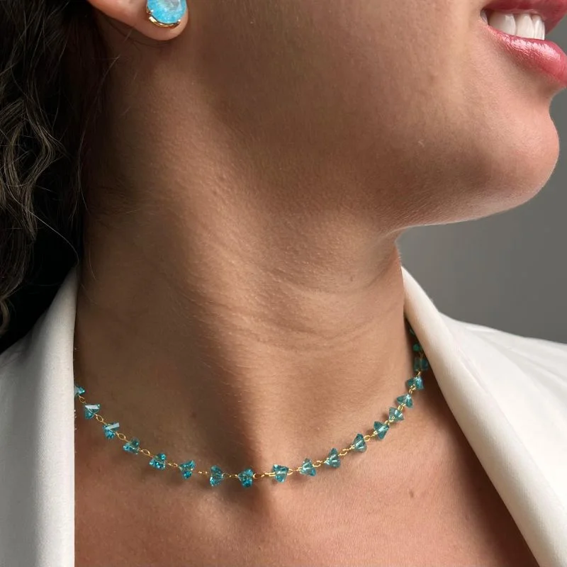 Choker Cristal Azul Banho Ouro 18k/Prata 925