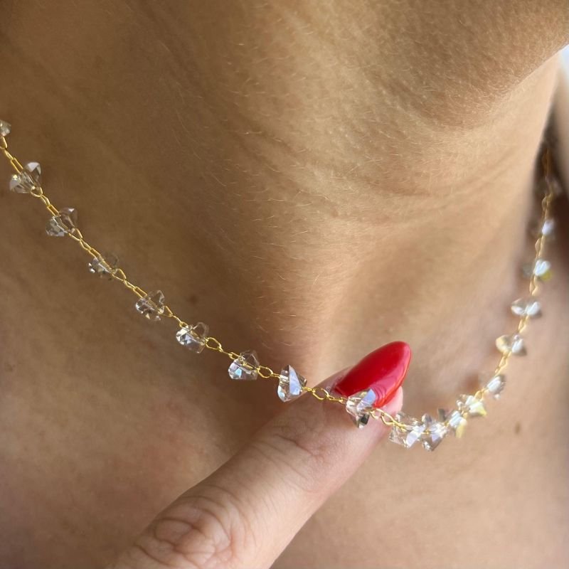 3. Choker Cristal Fume Banho Ouro 18k